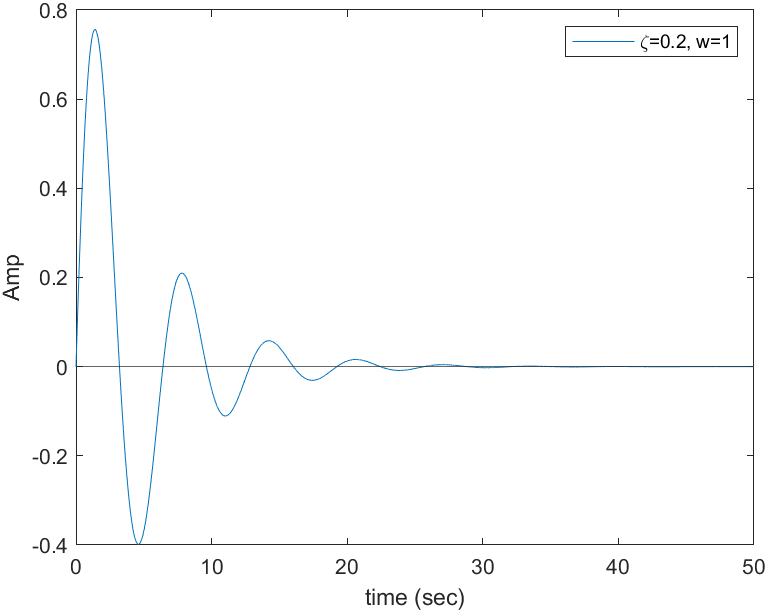 이번에는 $\zeta$를 1보다 작게 해보자. 예상컨데 진동할 것이다.