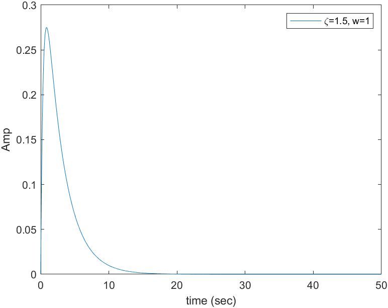 이 경우 $\zeta >1$ 이므로 s는 실근이다. 그러므로 이 물체는 진동하지 않고 수렴할 것으로 예상할 수 있다.