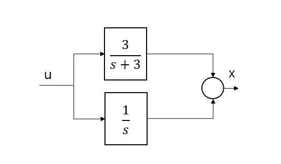 $$\therefore \frac{Out(s)}{Input(s)} = \frac{\frac{1}{s+1}}{1+\frac{1}{s+1}}$$