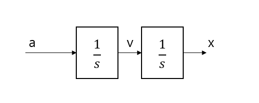 입력이 가속도이고 출력이 위치인 시스템은 아래와 같이 직렬로 표현할 수 있다.