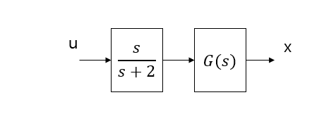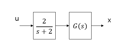 이와 같이 직렬로 연결된 block들은, 모두 곱해주어 하나의 전달함수로 나타낼 수 있다. 아래는 동일한 시스템이다.