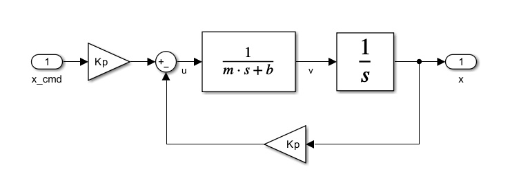 $$G(S) = \frac{\frac{1}{s(ms+b)}}{1+\frac{K_p}{s(ms+b)}}=\frac{1}{ms^2+bs+K_p}$$