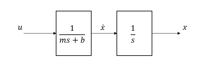 $$G(s) = \frac{X(s)}{U(s)}=\frac{1}{s(ms+b)}$$